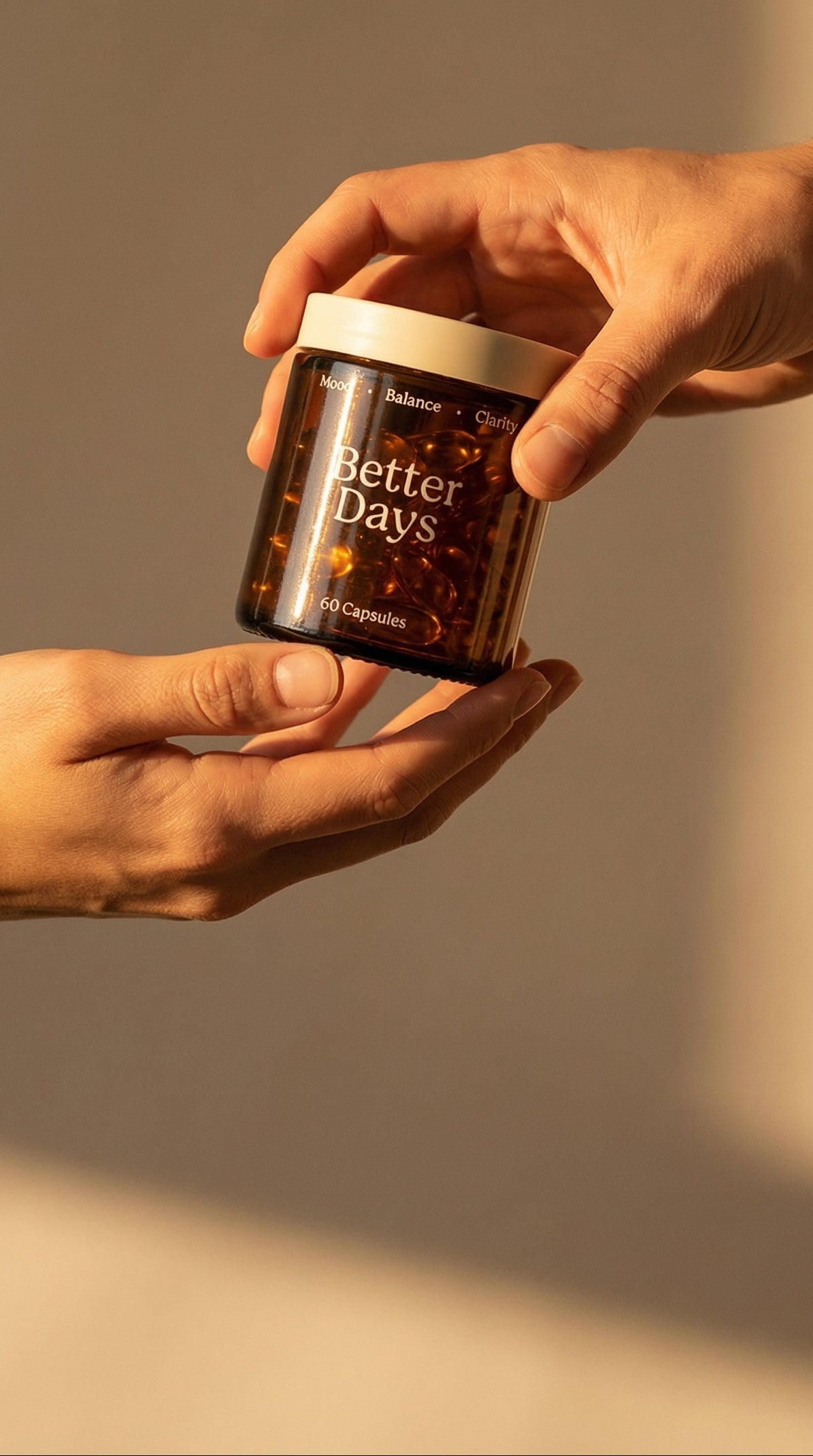 Better Days is a daily supplement made to lift your mood and help you feel lighter, happier, and more yourself again. Using a clean blend of natural botanicals, it supports emotional balance and mood uplift in a way you can actually feel. Without the side effects.